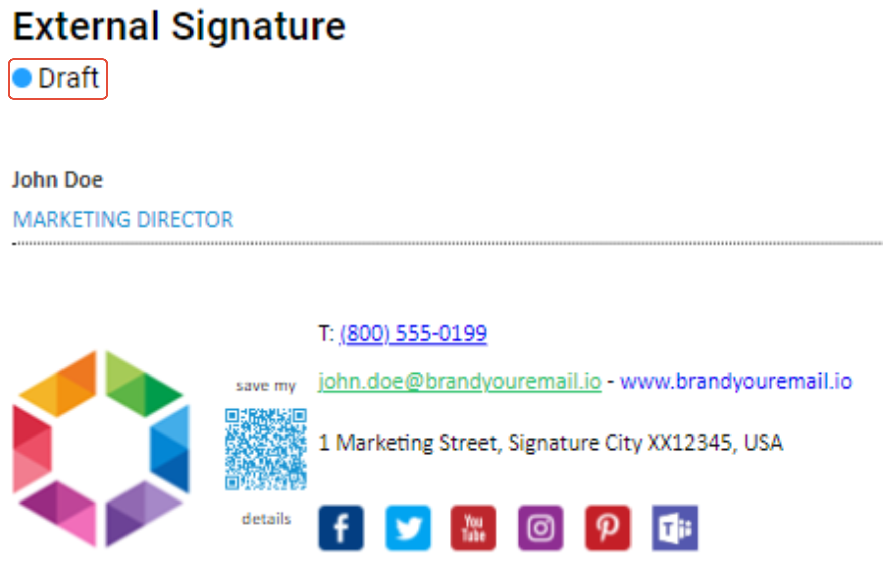 Your Signature, Campaign and Disclaimer templates will display an indicator showing if the latest version is in draft, published or published with a more decent draft:
